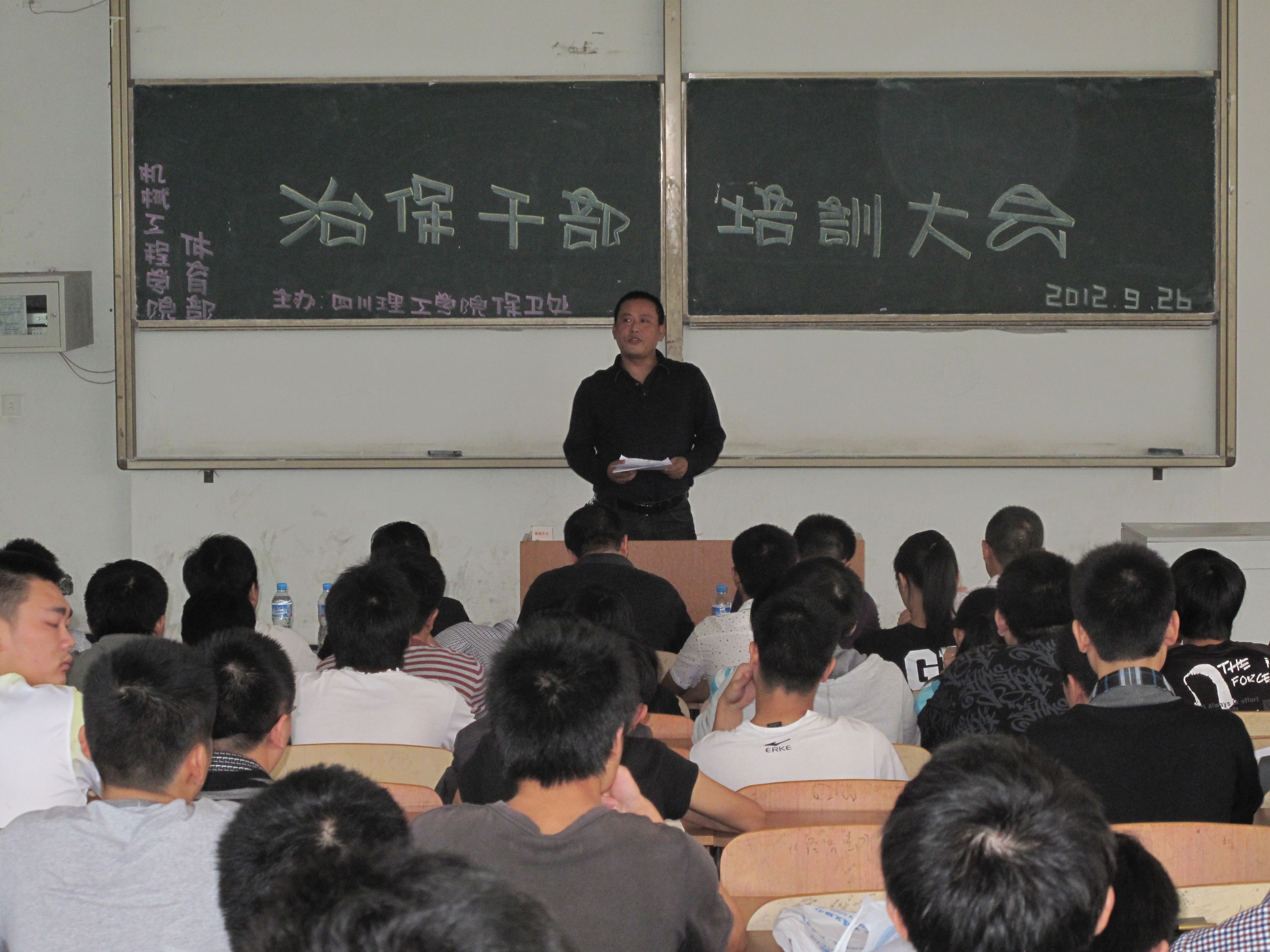 为了促进校园文化建设,建设平安校园,增强大学生安全防范意识和能力,进一步提高学生治保干部的业务素质,创造平安、和谐、稳定的校园环境,保卫处治安科、政保科、消防科于9月26日下午在汇南校区厚德楼326教室组织开展“增强业务素质,共建平安校园”治保干部专题培训。部分二级学院负责学生工作的老师,学生治保干部参加了本次培训。