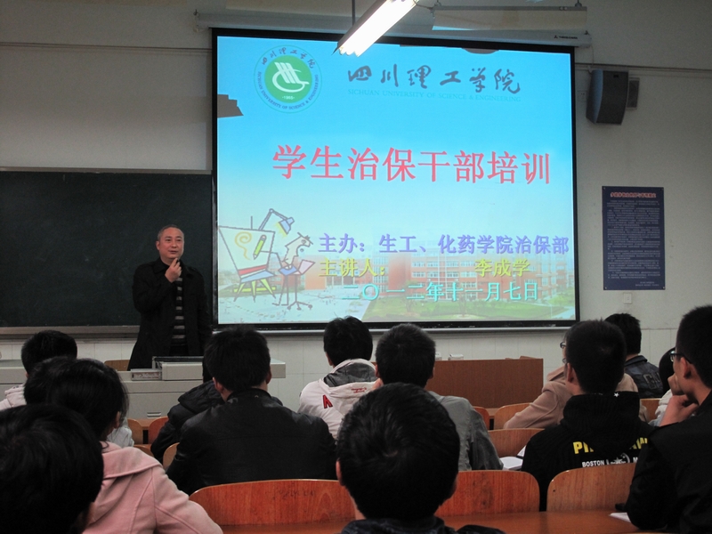 为了加强学校的安全管理和提高同学们的安全意识,生工、化药学院于11月7日在汇南校区厚德楼317教室共同举办了治保委员培训大会。学校保卫处副处长李成学和两个学院各班的治保委员参加了此次会议。
