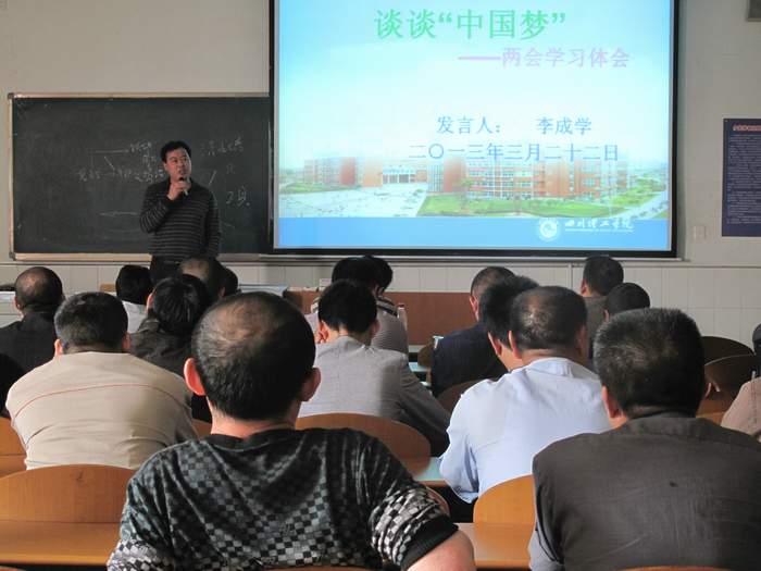 保卫处副处长李成学以《谈谈中国梦——两会学习体会》为题作了主题发言,带领大家共同学习十八大和两会精神。他结合十八大和两会的精神从中国梦的历史渊源、中国梦的提出及背景、中国梦的内涵和意义以及实现途径等方面,联系工作实际,深入浅出,向大家详细阐述,使大家能更深入地理解十八大和两会的精神实质。
