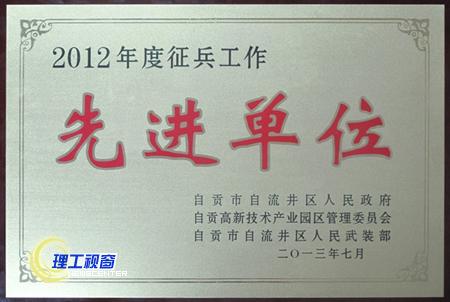 我校武装部征兵工作在征兵准备、宣传教育、兵员质量、改革措施、廉政建设方面成绩突出,被评为自贡市自流井区2012年征兵工作先进单位,武装部干事江麟曦被评为自贡市自流井区2012年征兵工作先进个人,受到区政府表彰奖励。