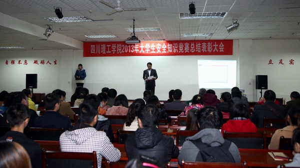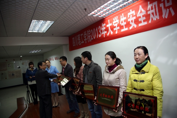 11月27日下午,我校2013年大学生安全知识竞赛总结表彰大会在汇南校区科学会堂就业指导中心举行。副院长肖兴政和保卫处、学生处、团委的相关负责人出席会议,并为获奖选手和二级学院颁奖。