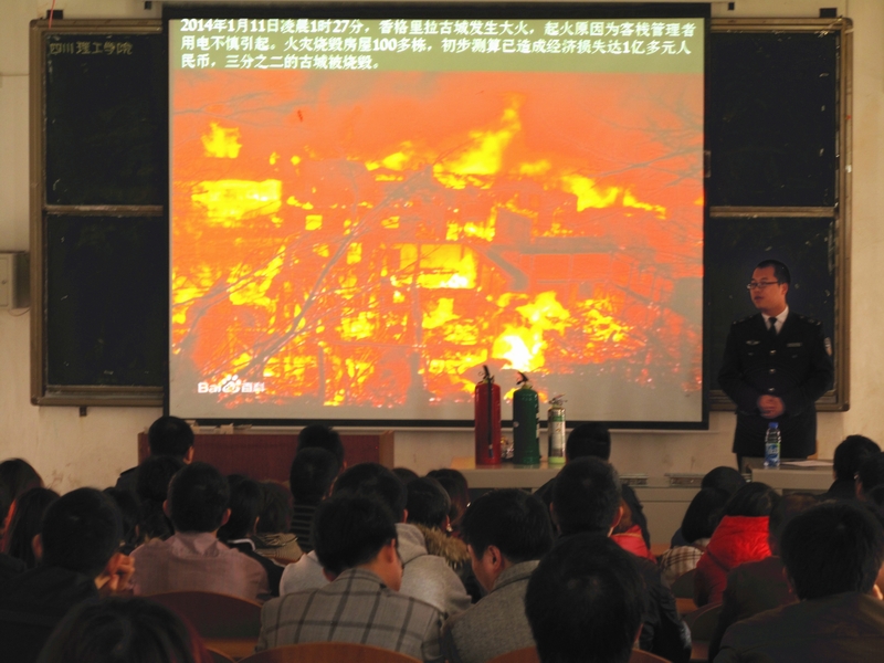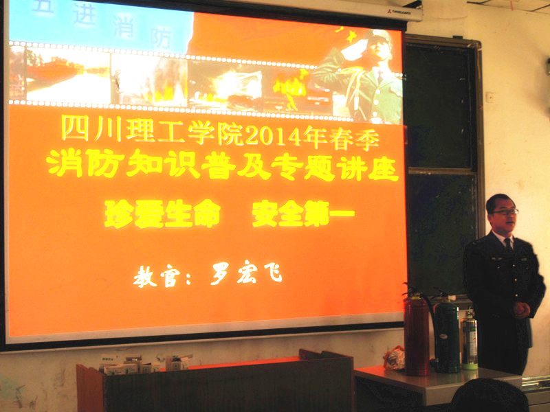 为进一步提高广大师生的消防安全知识及灭火技能,扎实做好安全工作,2014年3月12日下午,四川省消防宣传中心罗宏飞教官应邀到校,在汇南校区厚德楼127教室为广大师生做了消防培训专题讲座。学校各部门、二级学院消防安全责任人、保卫处、后勤服务总公司、学生志愿消防队、学生治保部等250余名师生参加了培训。