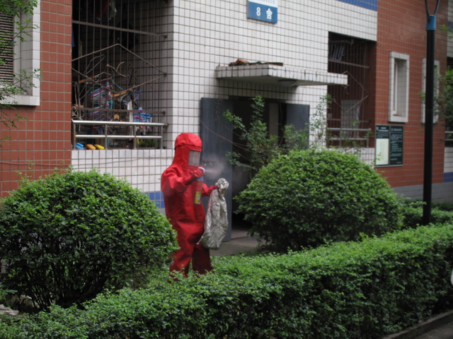 下午,据师生反映,学校汇东校区学生公寓8栋、第一实验楼楼顶、行政楼前有马蜂筑巢,威胁师生安全。保卫处获知此事后,立即派员现场查看,当即联系自贡市消防支队