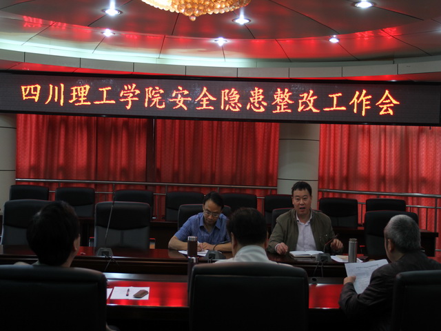 2014年10月21日上午9时,学校在汇东校区行政楼2楼会议室召开安全隐患整改工作会议,由副校长肖兴政主持,两办、基建处、后勤管理处(后勤服务总公司)、保卫处、黄岭校区管委会等部门负责人参加了会议。