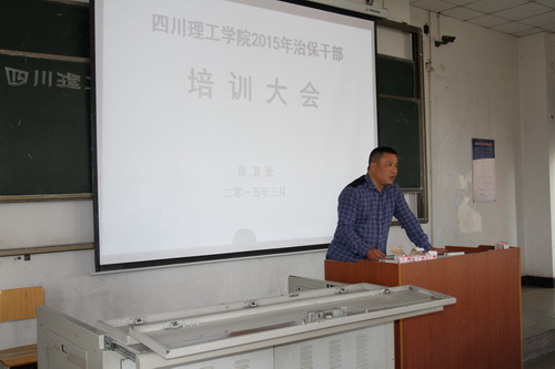 为增强大学生安全防范意识和能力,进一步提高学生治保干部的业务素质,创造平安、和谐、稳定的校园环境,3月25日下午3时,学校保卫处在汇南校区厚德楼306教室召开治保干部培训大会,校学生会及各二级学院治保部干部、人文学院、外语学院、建工学院各班治保委员100余人参加了本次培训。培训由材化学院校治保部(部长)梁智主持,保卫处副处长李成学、治安科科长何强、政保科科长张长安、消防科副科长张俊杰及部分保卫干部应邀参加。