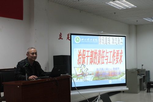 保卫处副处长李成学主要从“校园安全与国家安全形势”、“治保干部的职责及要求”、“校园常见事件及措施”三个方面进行了详实、生动和幽默地讲解,并向大家介绍了校园周边的安全隐患情况和网络安全问题,提出了相应解决措施。他殷切地希望全体治保干部树立全心全意为师生服务的思想,努力提升自身业务素质与服务水平,尽职尽责、警钟长鸣,为校园安全稳定工作再筑一道“防火墙”。