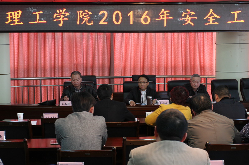 党委常委、副校长肖兴政出席会议并讲话,他强调:安全工作连着千家万户,宁可百日紧,不可一日松。他对2016年学校安全工作提出了要求:一要提高认识,增强做好安全工作的责任感和紧迫感;二要落实责任,严格落实责任制和责任追究制度,认真执行“谁主管,谁负责;谁在岗,谁负责;谁在场,谁负责”的原则和各级领导“一岗双责”安全工作责任制;三要夯实基础,建立健全并认真落实各项规章制度;四要突出重点,狠抓落实,全力做好2016年学校安全工作,为学校和谐发展提供坚实的保障。