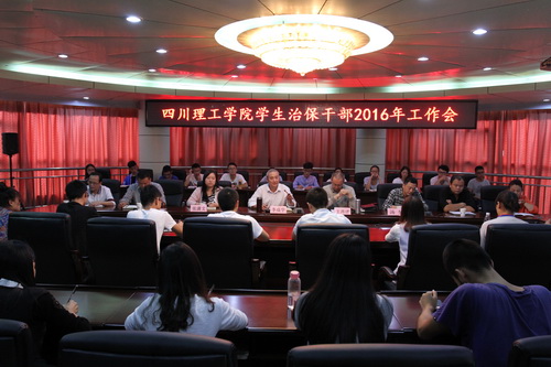 为加强学校学生治保干部队伍建设,9月22日下午,我校在汇南校区行政楼召开2016年治保干部工作会。保卫处副处长李成学、王再评,团委书记张潇文,学生处办公室主任汤旻,保卫处全体科级干部出席会议,校学生会生活治保部、二级学院生活治保部学生干部50余人参会。