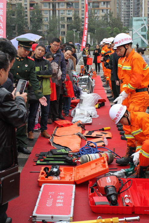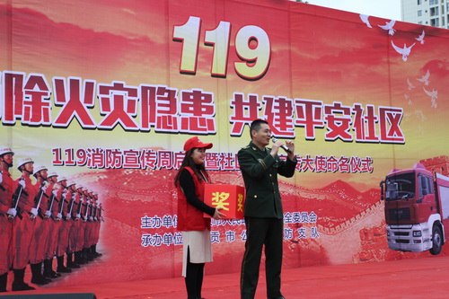 11月7日上午,自贡市“119”消防宣传周启动暨社区消防宣传大使命名仪式在华商国际城举行。我校作为市级消防安全重点单位组织了37名志愿消防队员参加此次活动。