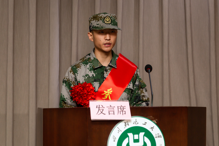 退役士兵、全国自强之星、音乐学院学生林志强代表学校全体退役士兵为新兵们鼓劲壮行,他鼓励新兵们在军旅生涯中勇攀高峰,让川轻化的“652”精神在军营中绽放光彩。他说,作为一名军人,必须忠诚于党和人民,坚定理想信念,继承和发扬人民军队的光荣传统。