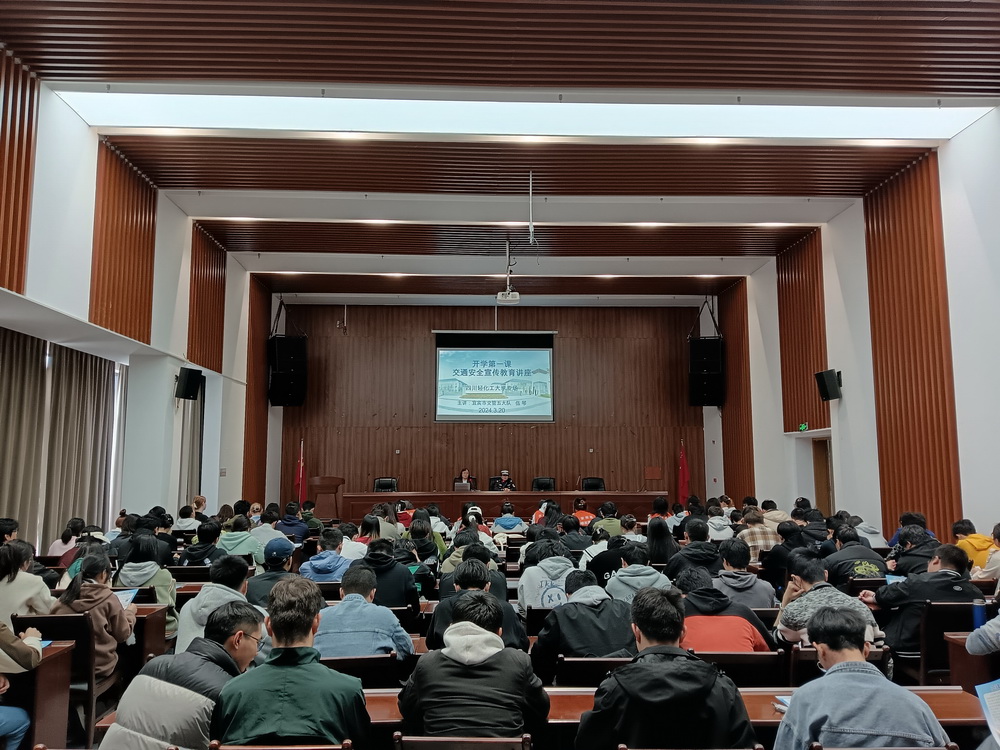 为进一步提高师生交通安全意识,预防和减少师生道路交通事故的发生。3月20日下午,武装保卫部(处)在宜宾校区综合楼101会议室开展 “开学第一课” 系列活动—校园交通安全宣讲。活动邀请了宜宾市公安局交警支队第五大队伍琴警官,宜宾校区150余名师生参加活动。活动由武装保卫部(处)杨代花主持。
