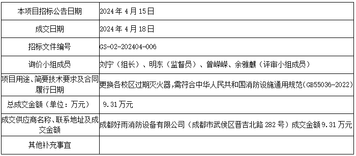 四川轻化工大学武装保卫部(处)关于2024年四川轻化工大学灭火器材采购项目的成交...