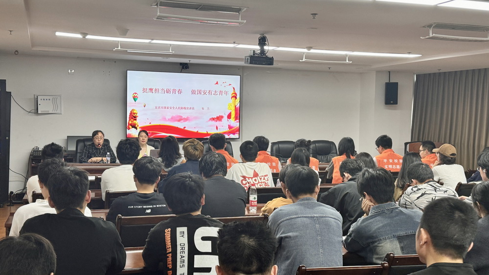 4月24日下午,四川轻化工大学宜宾校区在综合楼323举办了一场主题为“挺膺担当砺青春,做国安有志青年”的国家安全宣讲活动。此次活动旨在加强大学生对国家安全的认识,激发其维护国家安全的责任感和使命感。此次活动由宜宾市叙州区柏溪街道党工委委员、政法委员、首批宜宾市国家安全人民防线宣讲员韦兰主讲,宜宾校区100余名师生参加。
