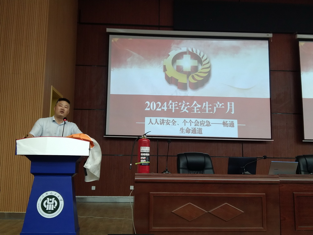为深入学习贯彻习近平总书记关于安全生产重要论述,落实2024年6月第23个全国“安全生产月”。5月29日下午,学校宜宾校区开展“人人讲安全 个个会应急---畅通生命通道”为主题的消防安全培训。武装保卫部(处)特邀五进消防培训中心王登教官在宜宾校区图书馆学术报告厅开展消防安全知识讲座。宜宾校区各学院、部门等300余名师生员工参加此次培训。