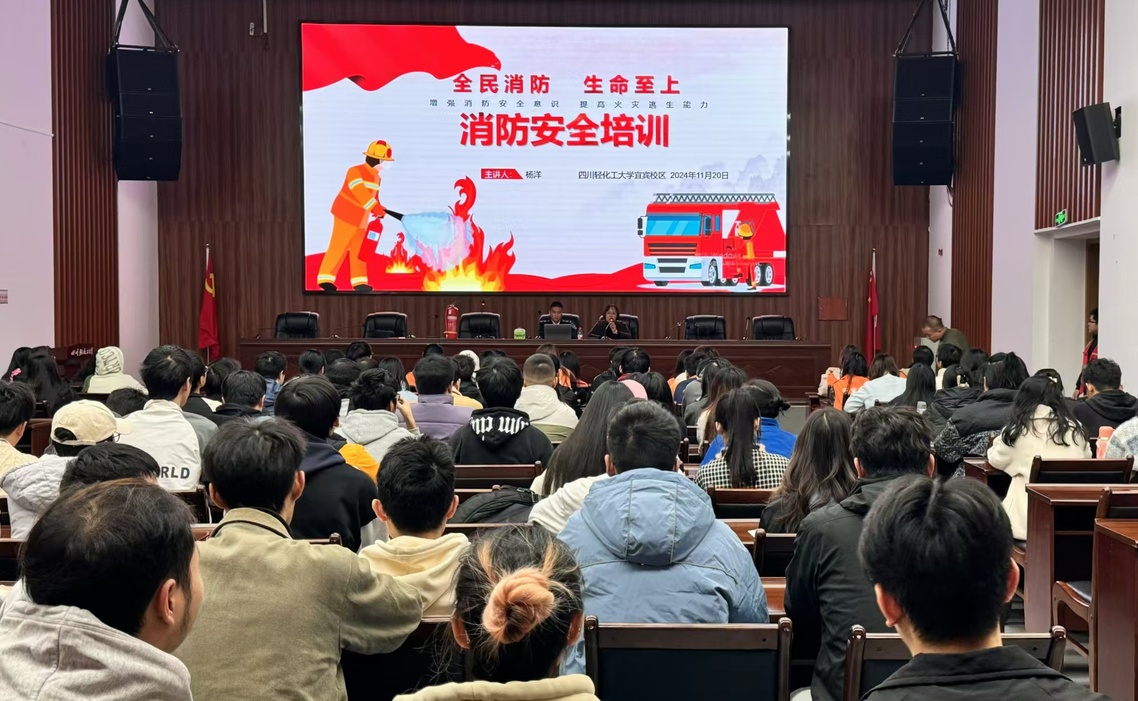 全民消防,生命至上。为进一步做好校园消防安全工作,增强师生的消防安全意识。11月20日,武装保卫部(处)特邀五进消防培训中心杨洋教官在宜宾校区综合楼101室对师生开展消防安全培训,宜宾校区140余名师生参加。