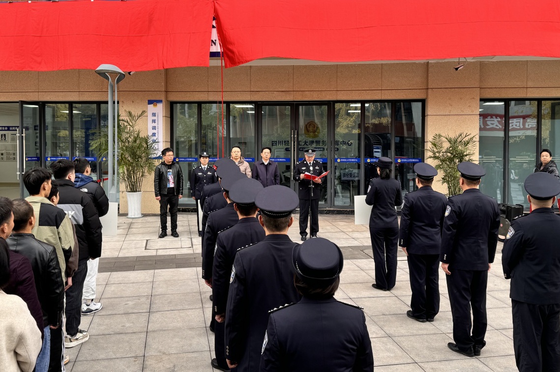 宜宾市政法委、市公安局、市委人才和大学城工作局、三江新区公安分局相关领导、学校相关部门负责人、在宜高校代表及学生代表参加揭牌仪式。