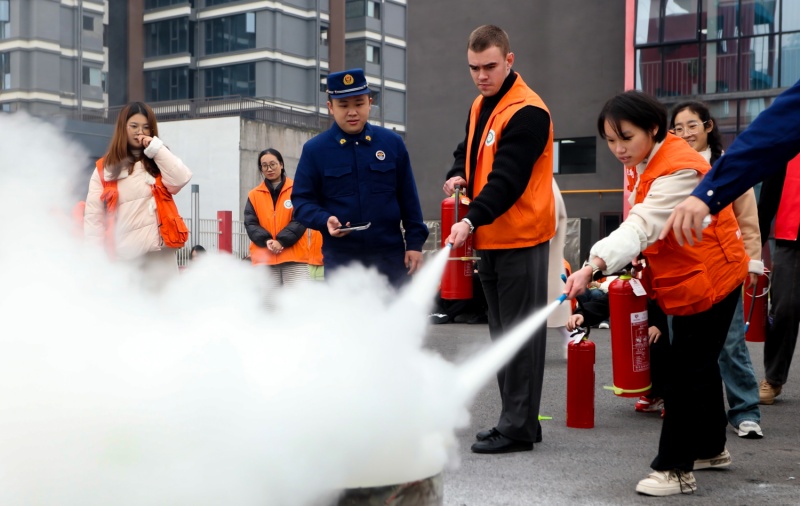 随后同学们与消防员分组对抗进行了一场拔河比赛,比赛中不仅展现了团队协作的力量,也增进了彼此间的友谊。来自俄罗斯的留学生同学也积极参与,为活动增添了国际化的元素,促进了跨文化的交流与融合,为活动增加了多元文化的色彩。