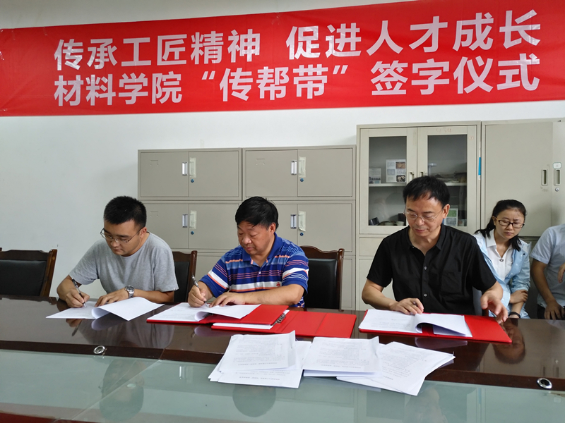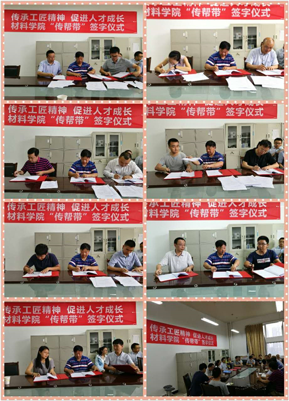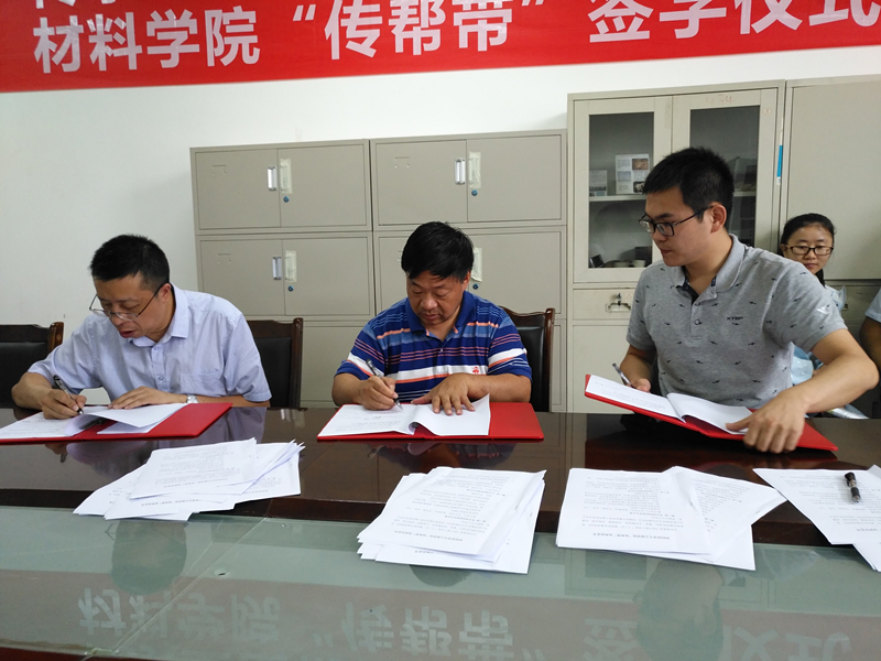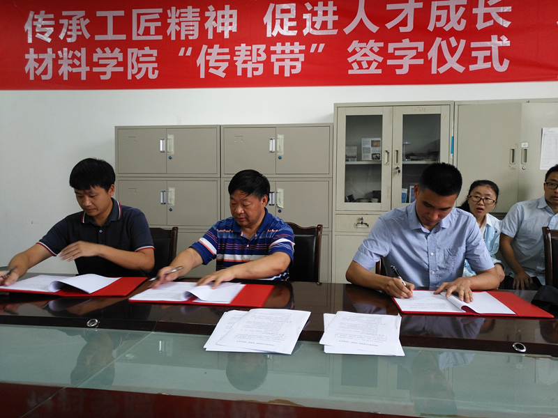 7月6日上午,材料学院举行“传帮带”培养协议签字仪式,学院领导、签约教师及2016-2017年新进博士参加,7名新进博士分别于指导教师签订了协议。签订“传帮带”培养协议旨在全面落实《四川理工学院“十三五”教师队伍建设规划》,传承工匠精神,促进青年教师的尽快成长,建设一支师德高尚、业务精湛、结构合理、充满活力的高素质专业化教师队伍。协议从师德建设、教学科研等多方面规定了双方的责任和义务。特别要求青年教师在教书育人、为人师表、爱岗敬业,在思想、业务、工作态度等方面要主动虚心向指导教师学习、尊重指导教师,认真钻研教育教学理论,严格执行教学常规;在项目申报、服务地方工作、科技成果评价、科技成果奖励申报等方面积极主动与指导教师联系,虚心向指导教师请教,尽快融入到材料学科建设中来。