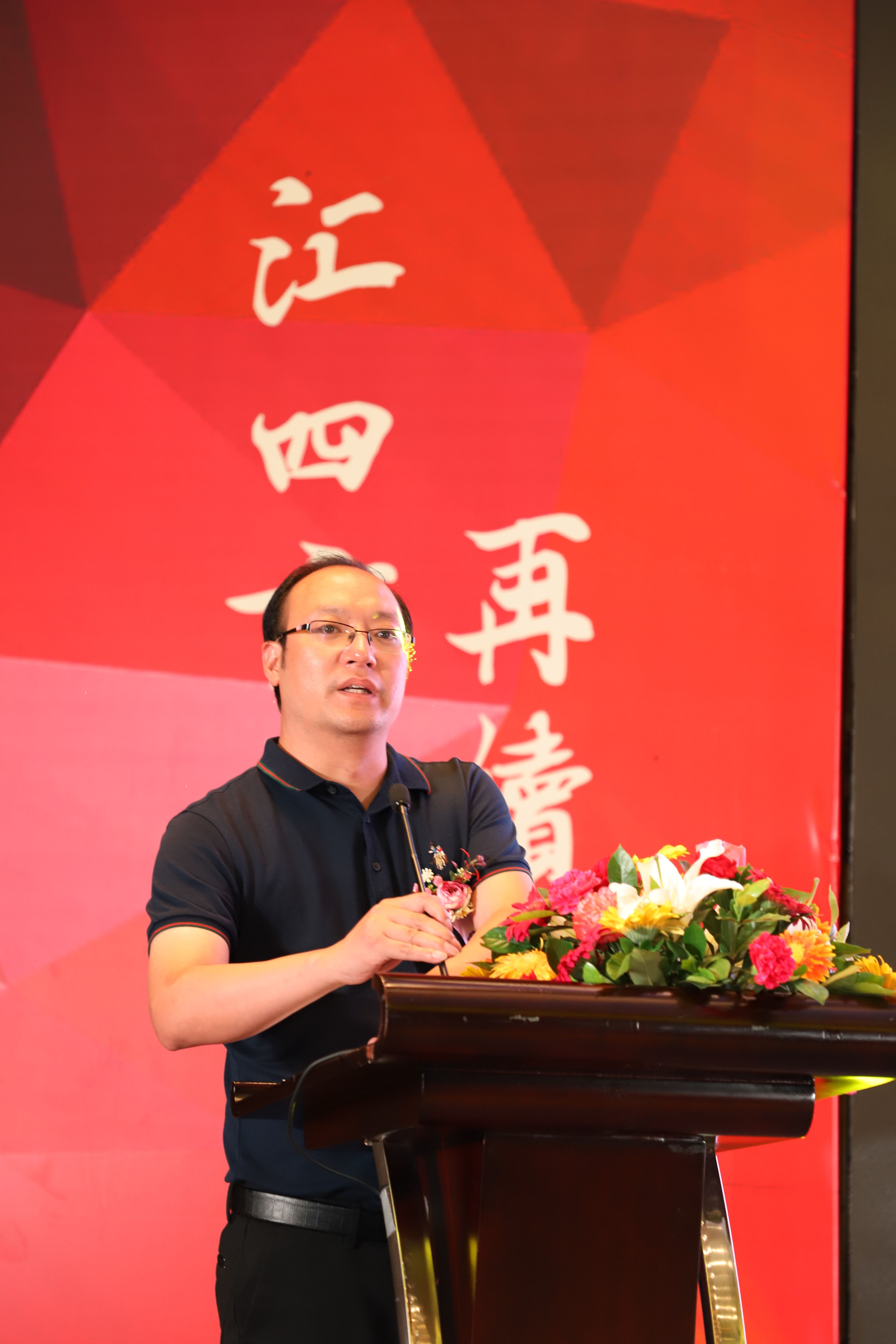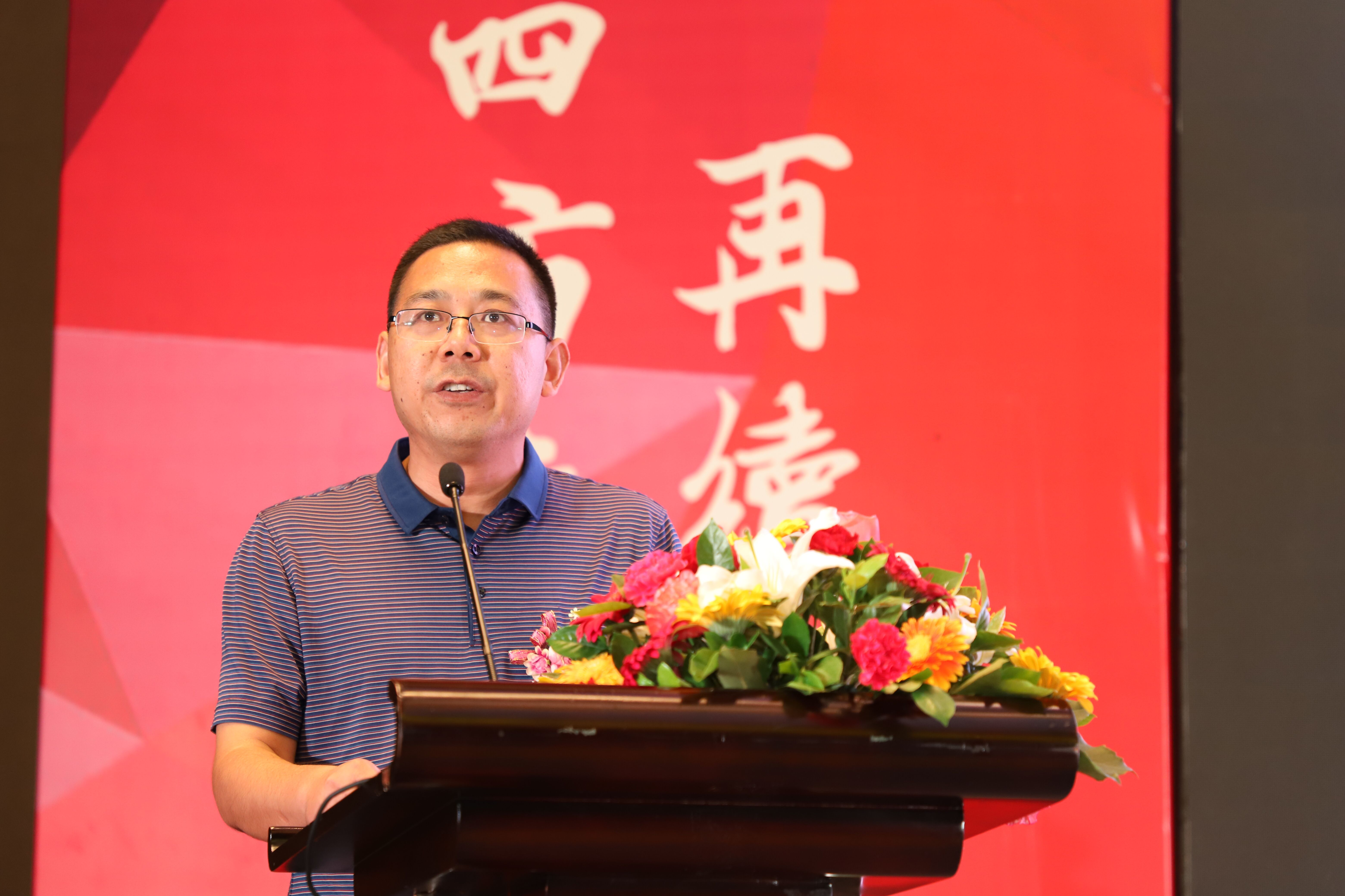 材料科学与工程学院成都校友会首任会长段志国讲话。他首先表达对母校的感恩和对校友们的感谢;回忆了在母校学习、成长的点点滴滴;作为首届会长,他表示一定会团结四方校友,为学校与各位校友搭建产学平台,回报母校的教育之恩。