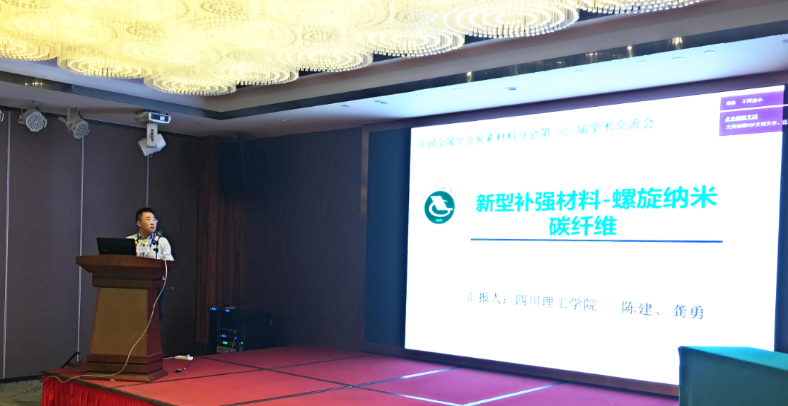 本次会议邀请了湖南大学刘洪波教授,中南大学黄启忠教授,中国石油大学郑经堂教授,天津工业大学史景利教授,华东理工大学路贵民教授,上海杉杉科技有限公司高级工程师乔永民以及山东大学袭建人教授等二十多位著名学者到会并做特邀报告。四川理工学院材料学院龚勇老师受学会邀请并在会上作“新型补强材料-螺旋纳米碳纤维”的特邀报告,展示了课题组在螺旋纳米碳纤维补强橡胶方面的最新研究成果。