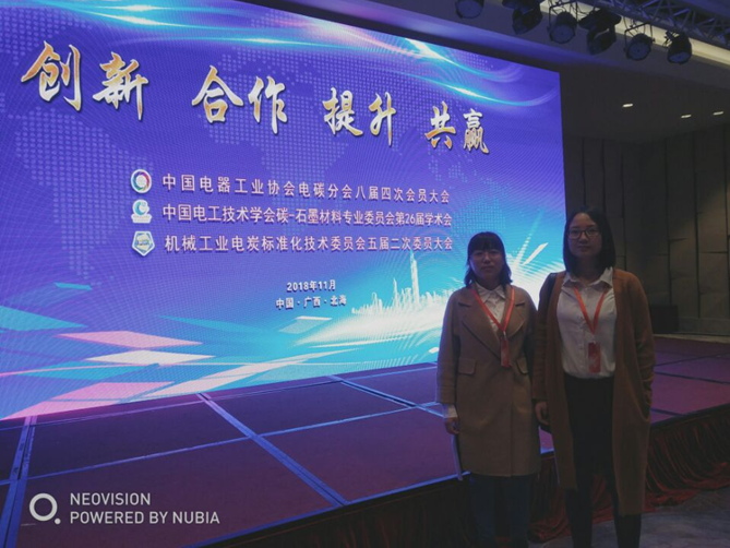 2018年11月22~25日,材料学院研究生谭苏芸、刘莎二人参加了在广西北海举办的“中国电器工业协会电碳分会八届四次理事会会议暨会员会议、中国电工技术学会碳-石墨材料专业位委员会会议暨第26届学术会议、机械工业电炭标准化技术委员会五届二次工作会议”,本次会议的主题是贯彻中国电器工业协会五届四次理事会会议精神,全面落实中国电器工业协会重点工作,总结和分析碳石墨行业的发展趋势,探讨和推进电碳行业标准化建设,交流碳石墨材料前沿技术,会议邀请了国内知名院士、教授、学者做碳石墨材料主题报告。