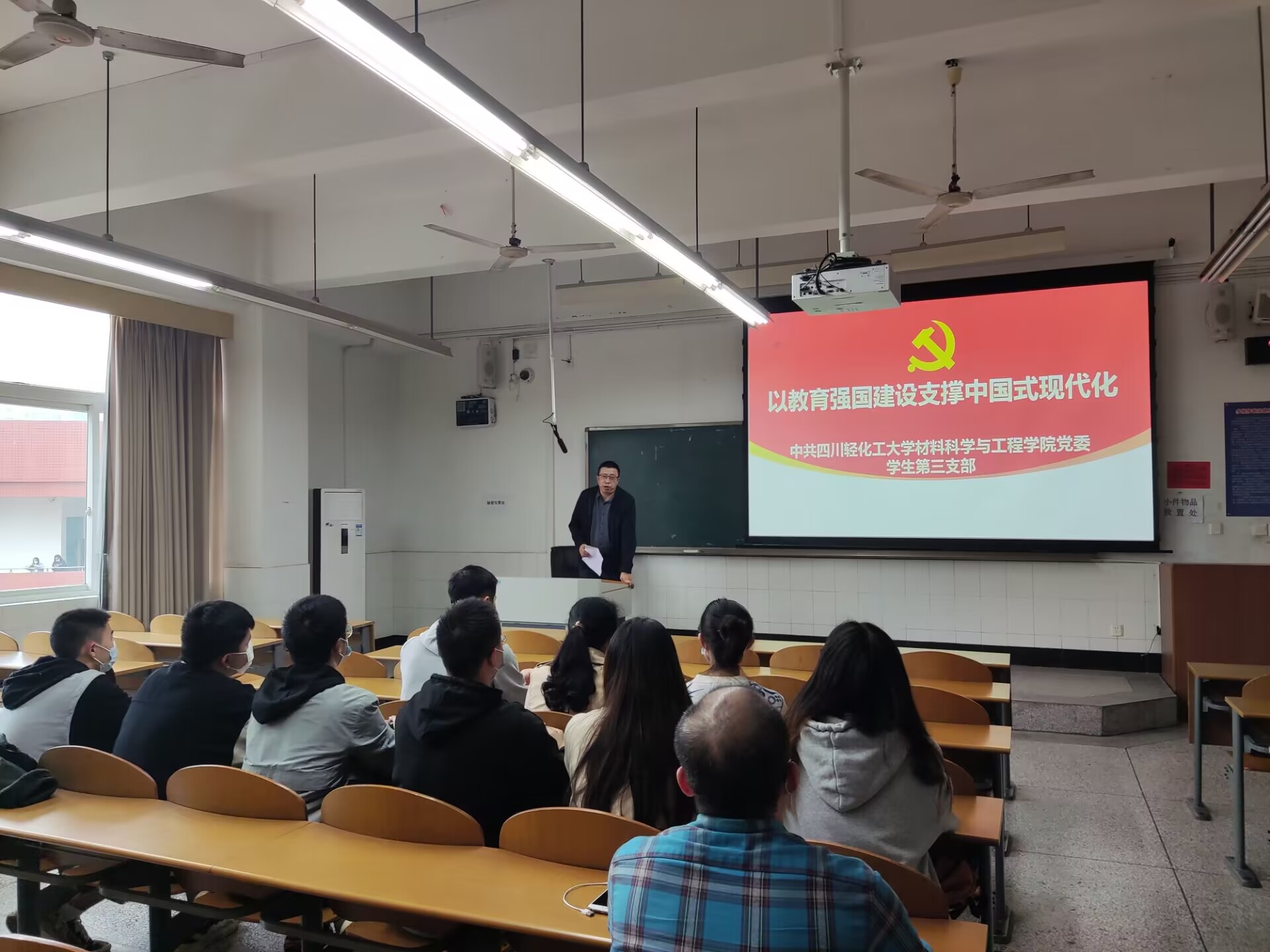 主讲人与支部党员共同学习了《以教育强国建设支撑中国式现代化》。党的二十大对中国式现代化进行了全面深入系统的阐释,形成了包括“五大特征”“九条本质要求”“五条重大原则”等在内的完整理论体系。我们必须深刻领会、系统把握,在全面学习、全面理解、全面落实上下功夫,深刻领悟党的二十大关于党和国家事业发展大政方针和战略部署的政治逻辑、历史逻辑、理论逻辑、实践逻辑,牢牢把握以中国式现代化推进中华民族伟大复兴的使命任务。