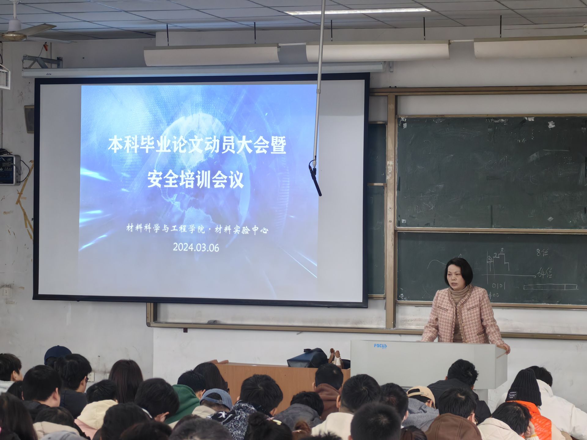 2024年3月6日上午,材料学院在汇南校区厚德楼N1-404和N1-406教室同时举行了“材料学院召开2020级本科毕业论文动员大会暨安全培训会议”。通过动员大会暨安全培训会议,让每一名进入实验室的毕业生充分了解本科毕业论文实验室的管理办法和办事流程,掌握基本的实验室安全常识,避免安全事故的发生,完成好毕业论文的实验工作。材料学院副院长林修洲、实验中心全体教师以及2020级本科生参加了此次会议。会议分别由实验中心主任何刚和陈晓超老师主持。