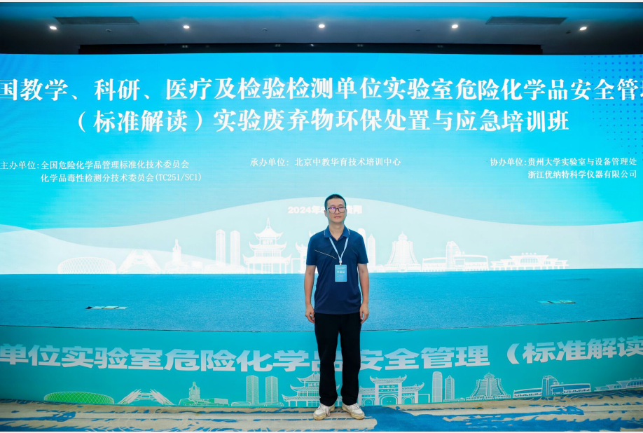 2024年8月2日至6日,“全国教学、科研、医疗及检验检测单位实验室危险化学品安全管理(标准解读)、实验废弃物环保处置与应急培训班”在贵阳举办。我校材料学院何刚老师参加培训。
