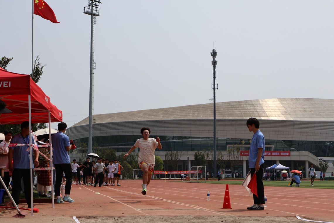 田赛项目同样精彩纷呈。跳高场地中,材料学院的选手们身姿矫健、身轻如燕,一次次助跑、起跳,在空中划出优美弧线,向着更高目标不断发起冲击;跳远沙坑旁,运动员奋力一跃,沙地上留下的深深脚印,便是他们拼搏的有力见证。铅球赛场上,铅球在空中划过一道刚劲有力的抛物线,尽显力量之美。运动员们在赛场上尽情挥洒汗水,充分展现自身风采。学院学生会成员与其他同学们则在赛场边热情加油助威,节奏鲜明的鼓点与响亮的呐喊声交织,让运动员们在赛场上斗志愈发昂扬,屡屡斩获佳绩。