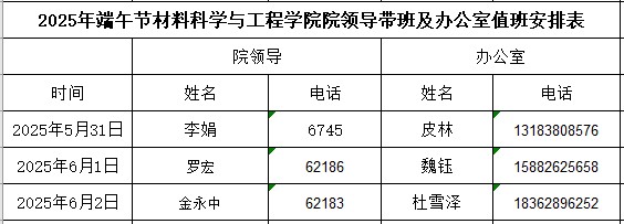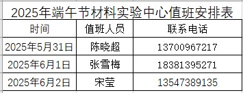 2025年端午节院领导带班及办公室、材料实验中心值班安排表