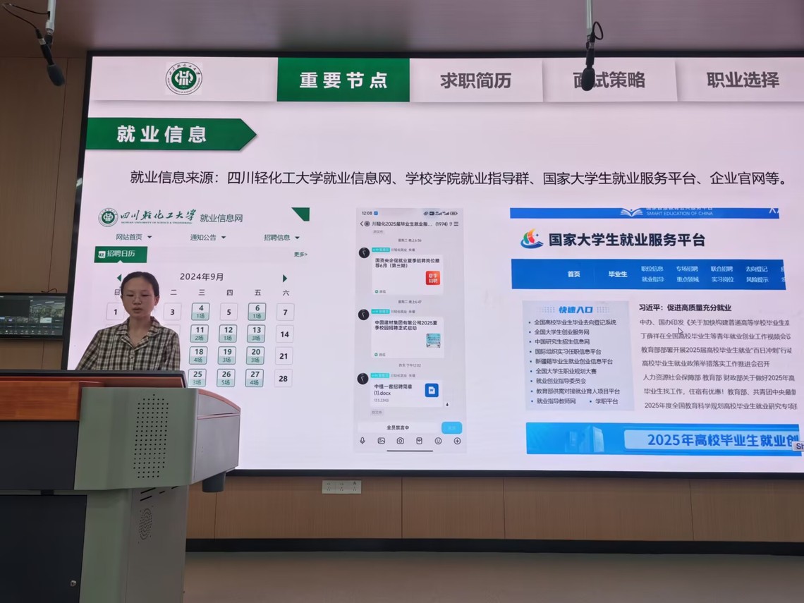 周茜(四川省地方选调生)从选调政策解读、岗位选择、备考规划等方面进行了详细说明,鼓励同学们提前了解招录要求,夯实综合素质。