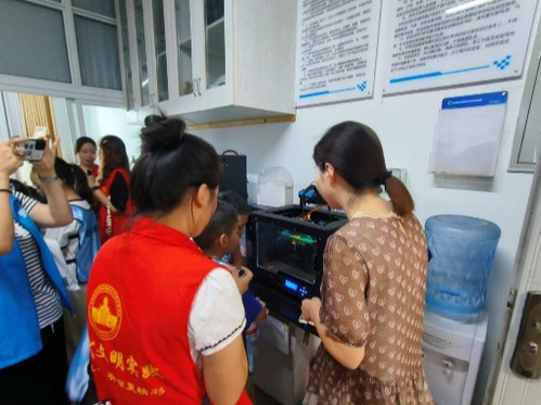 为丰富此次开放日活动,材料学院特别开放了锂/钠电池真空组装、3D打印实验室等多个专业实验室。研究生们与老师化身科学导游,将高精尖的科研设备转化为生动的科普教具。小朋友们逐渐了解了电池的组装过程及真空环境的作用,并在实验人员的帮助下自己动手体验了这一过程,对精密仪器有了直观的认识;随后,参观了3D打印机的真实工作过程,近距离感受已经制好的3D打印作品,体验3D打印的乐趣。