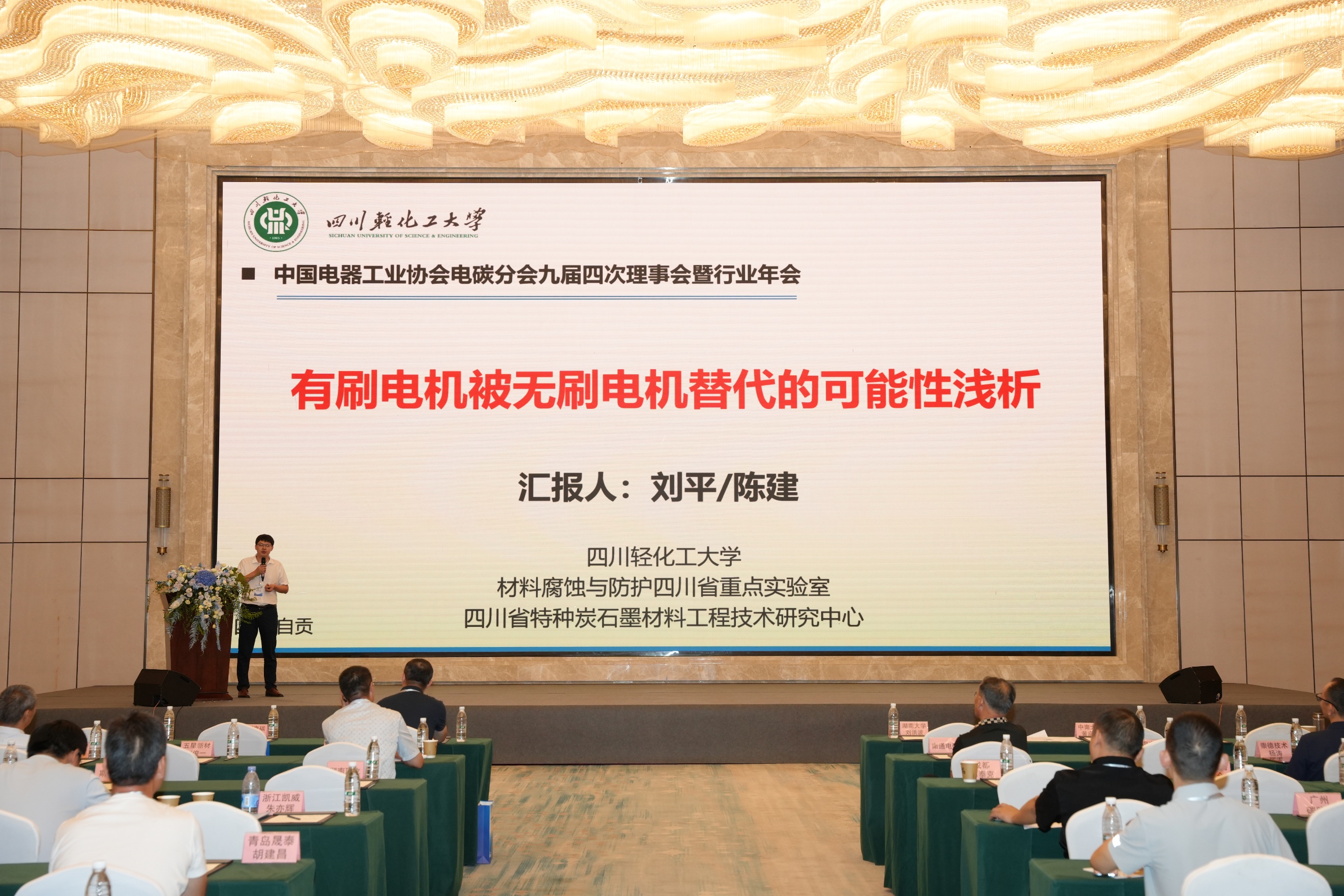 中国电器工业协会电碳分会是我国炭素行业极具影响力的重要协会之一。9月10-12日,中国电器工业协会电碳分会第九届四次理事会、会员大会暨学术论坛在四川自贡成功召开。我校材料学院青年教师刘平博士受邀出席并作大会报告,主题为《有刷电机被无刷电机替代的可能性浅析》。