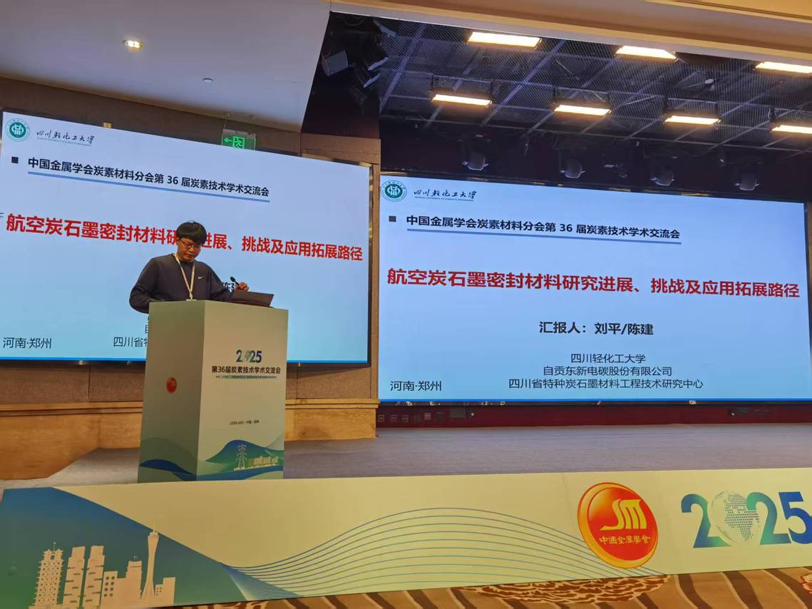 刘平博士作为分会第九届委员会委员、《炭素技术》青年编委出席分会第九届委员会第三次全体委员会议并作了“航空炭石墨密封材料研究进展、挑战及多维度应用拓展路径”的报告。刘平博士以航空炭石墨密封材料为切入点,围绕航空炭石墨材料、航空炭石墨密封材料数据库建立、HT-1炭石墨密封材料剖析、固相工艺关键技术及HT-1替代和建议与措施五个方面展开分享。报告后,刘平博士与来自湖南大学、北京大学、西北工业大学、中科院金属所、中科院煤化所和军事科学院防化研究院等高校及科研机构专家,以及贝特瑞新材料集团股份有限公司、宁波杉杉新材料科技有限公司和河南五星新材科技股份有限公司等产业代表,围绕技术瓶颈与产业协同展开了深度研讨,分享了四川轻化工大学在该领域所取得的研究成果。