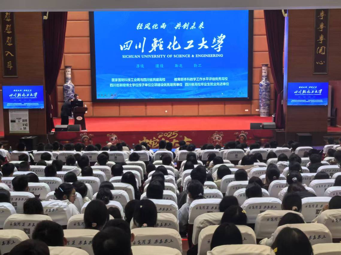 2026年2月25日晚,四川轻化工大学材料科学与工程学院陈建教授走进泸县五中为高2023级400余名师生带来了题为“新能源动力电池材料最新研究进展”的科普报告,学院党委书记黄斌同步开展招生宣传,整场活动氛围热烈、互动积极,得到了师生们的广泛好评,取得了良好的活动成效。