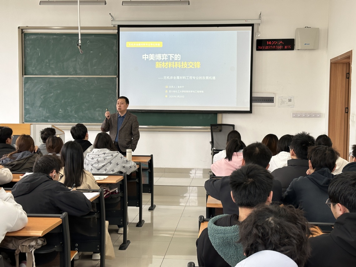 3月20日,材料科学与工程学院院长金永中教授为无机非金属材料工程专业新生作题为《中美博弈下的新材料科技交锋——无机非金属材料工程专业的发展机遇》的专题讲座,融合思想政治教育、廉洁教育与专业导论,为同学们带来一堂有高度、有深度、有温度的专业导论课。