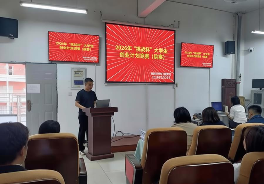 为深化创新创业教育,激发学生创新热情,选拔优秀项目冲击更高层级赛事,3月26日下午,材料科学与工程学院2026年“挑战杯”大学生创业计划竞赛院赛在汇东校区第二实验楼4090会议室成功举办。本次赛事汇聚17支本科团队、6支研究生团队同台竞技,共展学子创新创业风采。