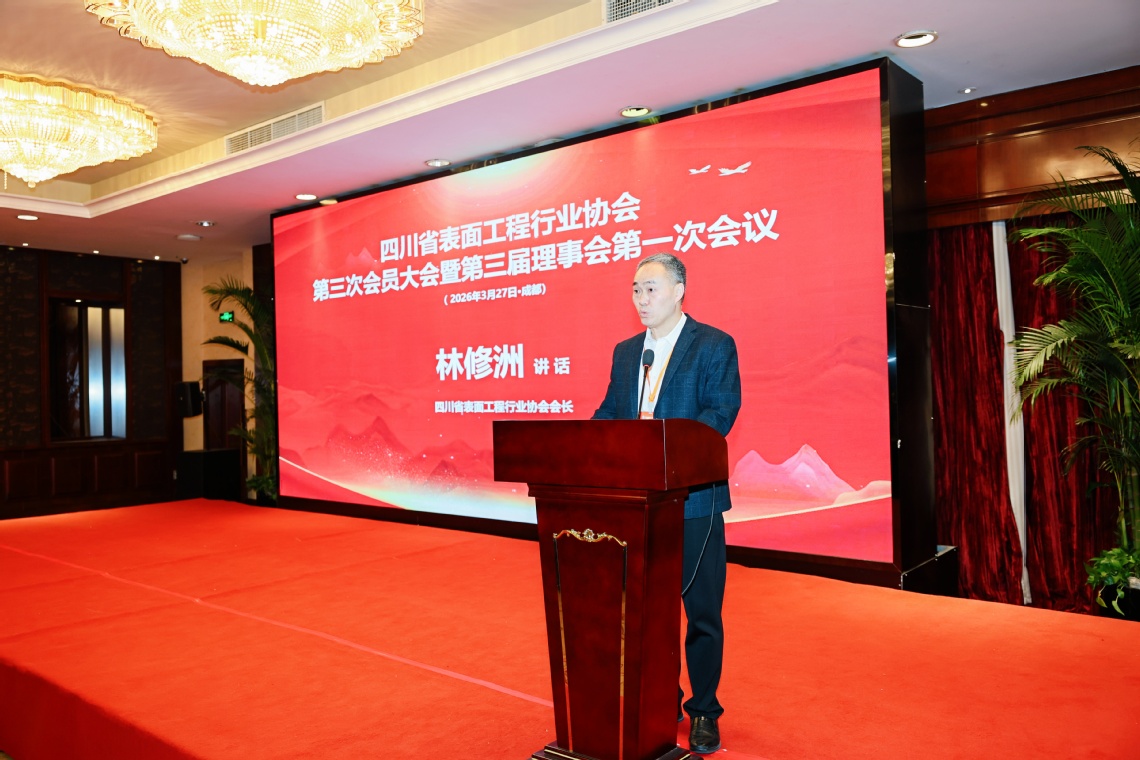 2026年3月27日,四川省表面工程行业协会第三次会员大会暨三届一次理事会在成都宏鼎温德姆至尊豪廷大酒店隆重召开。四川省经济和信息化厅一级调研员张军,中国表面工程协会副秘书长孙国庆、刘娥,中国表面工程协会科技装备分会理事长欧忠文,中共四川省社会组织装备制造产业联合支部书记郝世强,江苏、湖南、重庆等7省市表面工程协会领导,四川省机械工程联合会等11个省内相关协会/学会领导,以及四川省表面工程行业协会各会员单位代表、协会分支机构负责人、专家委员会成员以及省内外相关企业代表等 200 余人参加会议,省内外29个协会/学会发来贺信,我校林修洲、张颖君、李明田等参加会议。协会副秘书长王晖主持会议。经协会第三次会员大会和三届一次理事会依法依规选举,我校材料学院副院长林修洲教授当选为四川省表面工程行业协会第三届理事会会长,学校成为第三届理事会会长单位。本次大会的顺利召开,标志着四川省表面工程行业协会迈入了承前启后、继往开来的全新发展阶段。学校成为新一届理事会会长单位,将与省内表面工程行业各各企事业单位一起,坚持以党建为统领,持续深化会员服务,推动行业绿色低碳、智能化转型