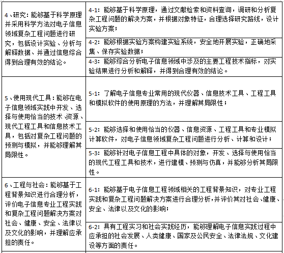 4、研究:能够基于科学原理并采用科学方法对电子信息领域复杂工程问题进行研究,包括设计实验、分析与解释数据、并通过信息综合得到合理有效的结论。
