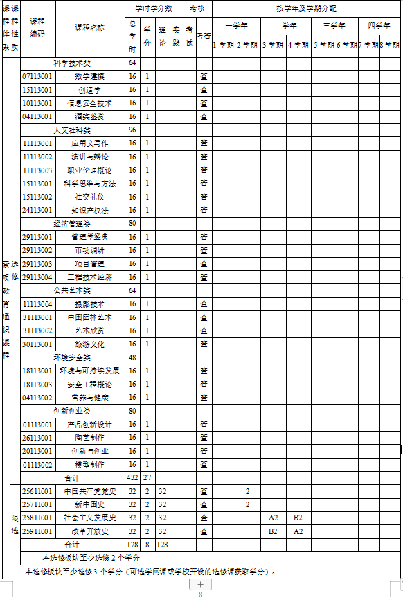 素质教育通识平台包括素质教育通识课程和素质教育实践课程两个课程模块,下列各表适用于各本科专业(个别另行设置了该课程模块的专业除外)