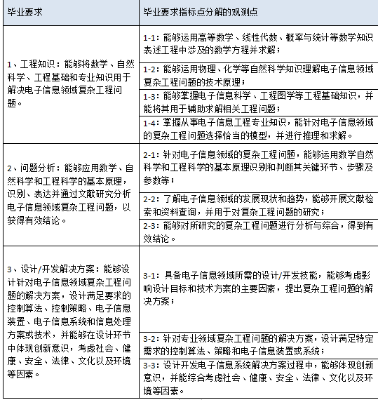 1、工程知识:能够将数学、自然科学、工程基础和专业知识用于解决电子信息领域复杂工程问题。