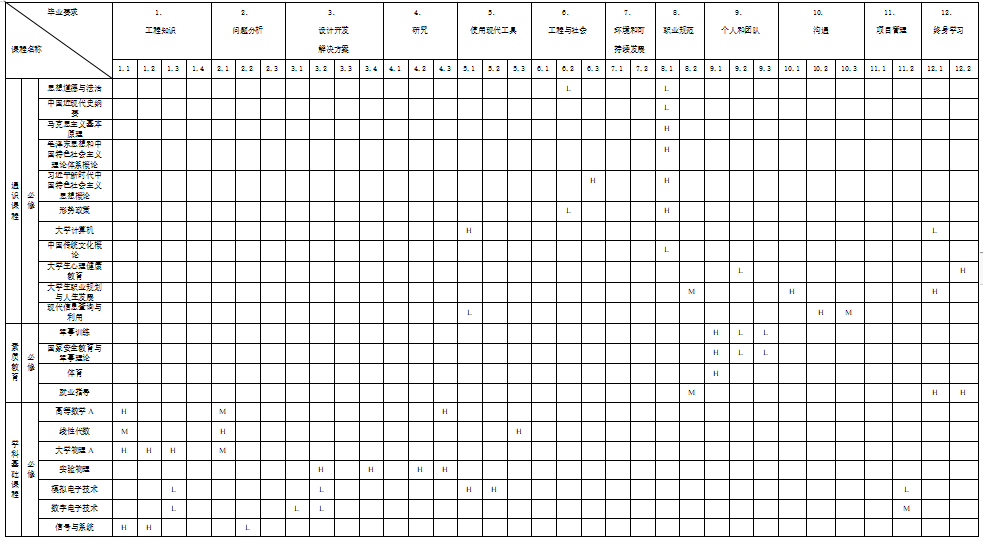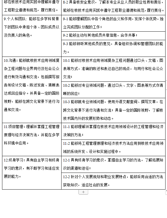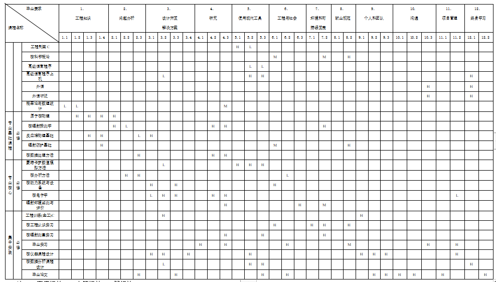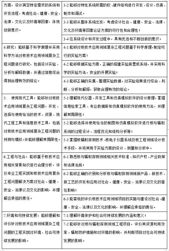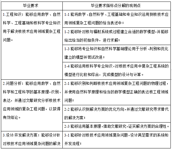 核工程与核技术专业本科毕业生毕业要求及指标观测点如下: