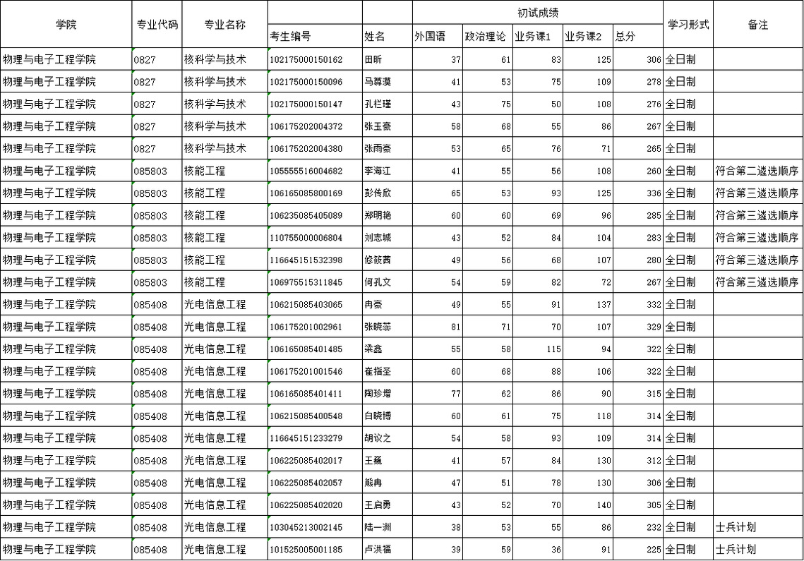 四川轻化工大学 物理与电子工程学院2025年硕士研究生调剂第一批复试名单