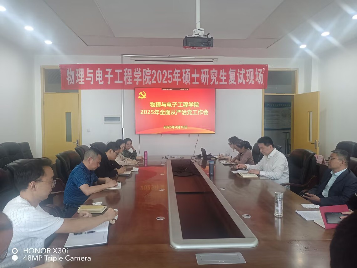 4月16午,学院在宜宾校区A5-414会议室召开2025年上半年全面从严治党工作会,学院处科级干部、系(副)主任参加了会议,学院党委书记钟世友主持会议。