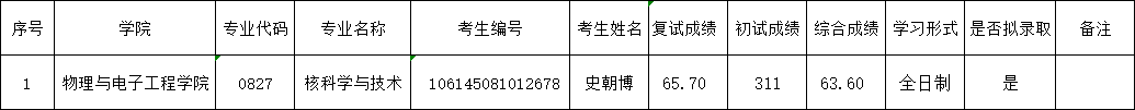 经我院研究生招生复试录取工作领导小组会议研究确定:根据我院招生计划,按复试合格考生综合成绩由高分到低分排序确定拟录取考生1名。请拟录取考生按学校《四川轻化工大学2025年硕士研究生复试录取工作安排》要求进行体检,并将体检表从即日起一周内邮寄给学院。