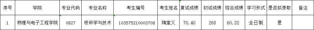 经我院研究生招生复试录取工作领导小组会议研究确定:根据我院招生计划,按复试合格考生综合成绩由高分到低分排序确定拟录取考生1名。请拟录取考生按学校《四川轻化工大学2025年硕士研究生复试录取工作安排》要求进行体检,并将体检表从即日起一周内邮寄给学院。
