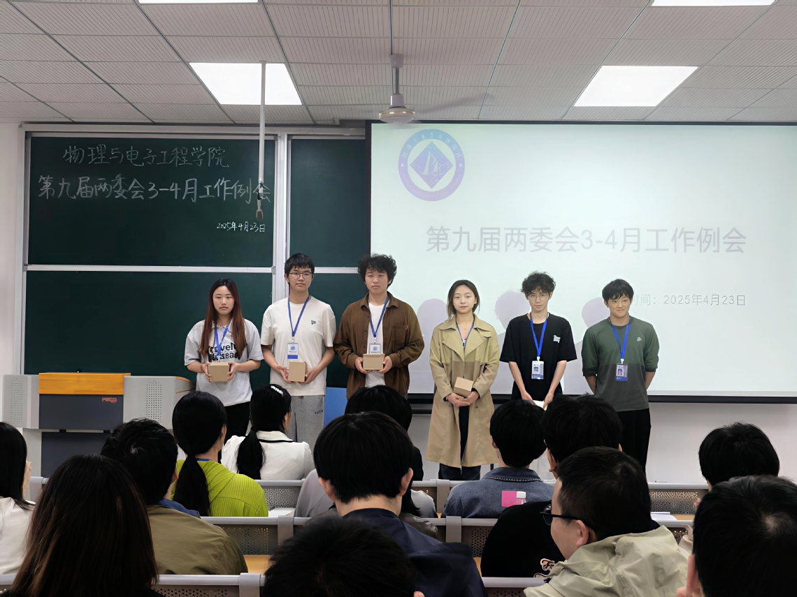 为继续全面规划本学期学生会工作方向,凝聚团队力量,激发奋进动能,物理与电子工程学院于2025年4月23日下午在A5-207教室召开3-4月学生会工作例会。学工办樊小灵、石明星老师及第九届学生会全体成员出席会议。学生会、团委秘书周文茜同学主持会议。