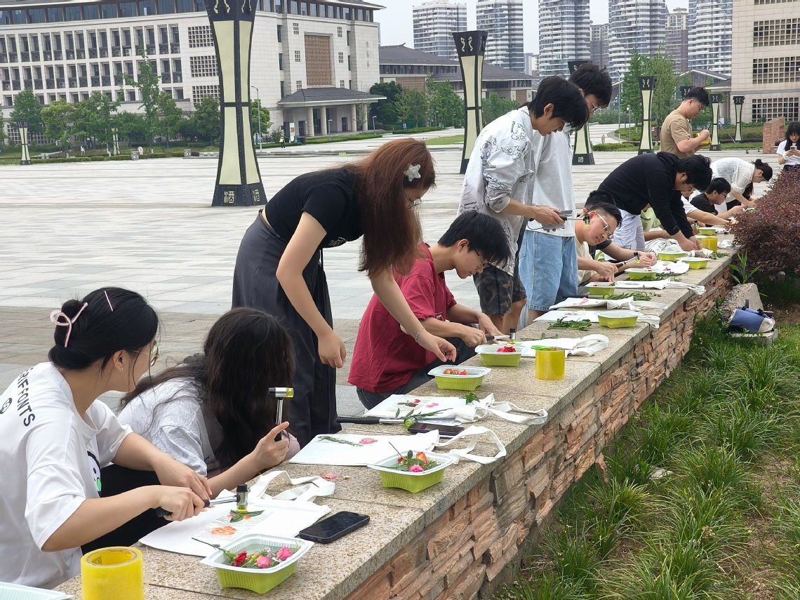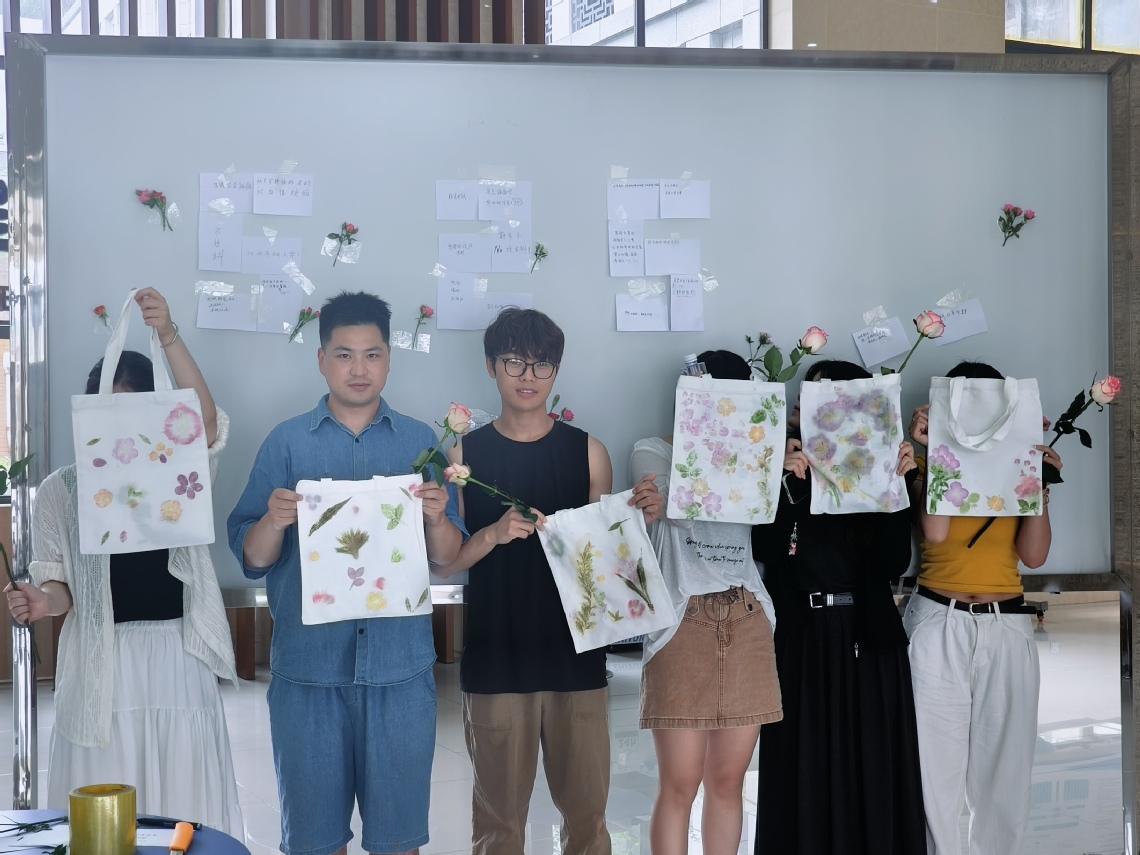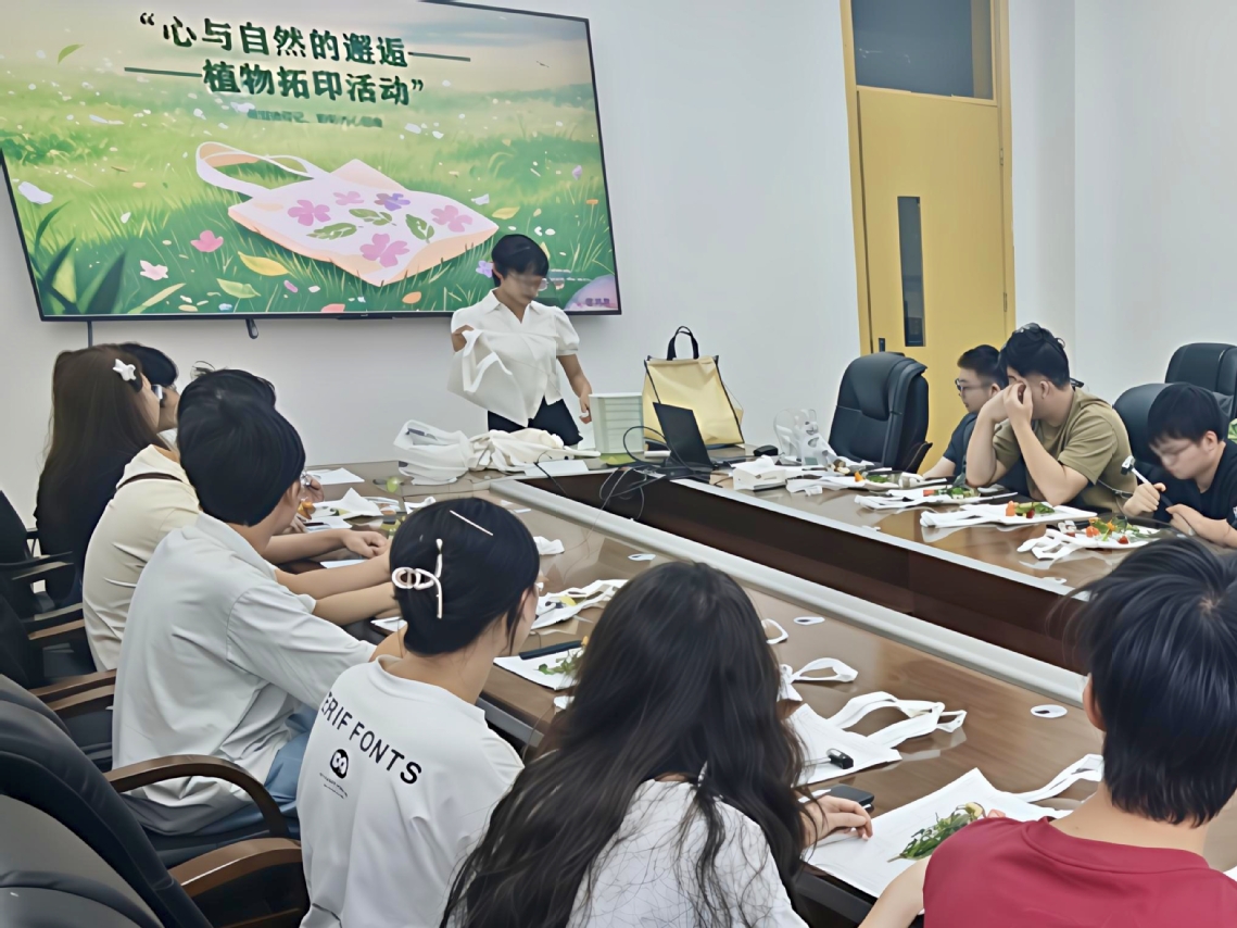 “草木传情·拓印芳华”——师生精选四时花草,以布为纸,以槌为笔,将自然之美凝于方寸。每一次敲击都是与万物的私语,每一帧拓印皆为情绪的流淌,让艺术疗愈与自然美学相映成趣。