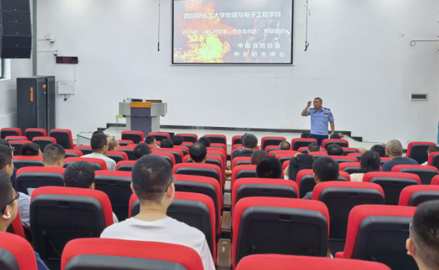 为深入贯彻落实习近平总书记关于安全生产的重要指示精神,扎实推进第24个全国“安全生产月”活动,围绕“人人讲安全、个个会应急——查找身边安全隐患”主题,5月28日,我院特邀中安防火中心蒋教官在宜宾校区A5-104报告厅为全体教职工开展消防安全知识培训,切实提升安全防范能力,筑牢安全生产防线。