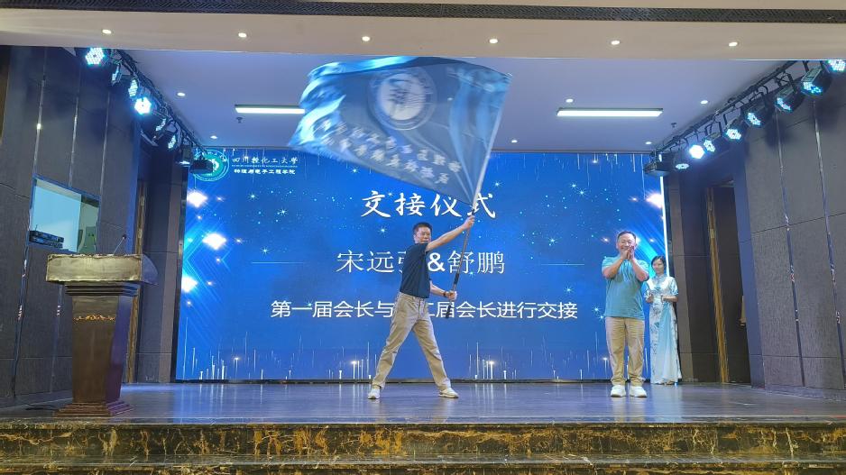 在庄重的会旗交接仪式中,第一届会长宋远强将校友会会旗正式移交至新任会长舒鹏手中,象征着校友工作的接力与传承。舒鹏会长在就职发言中表示,将继承发扬上一届理事会的优良作风,团结广大校友,不断创新服务形式,深化校友之间、校友与母校之间的联络与合作。